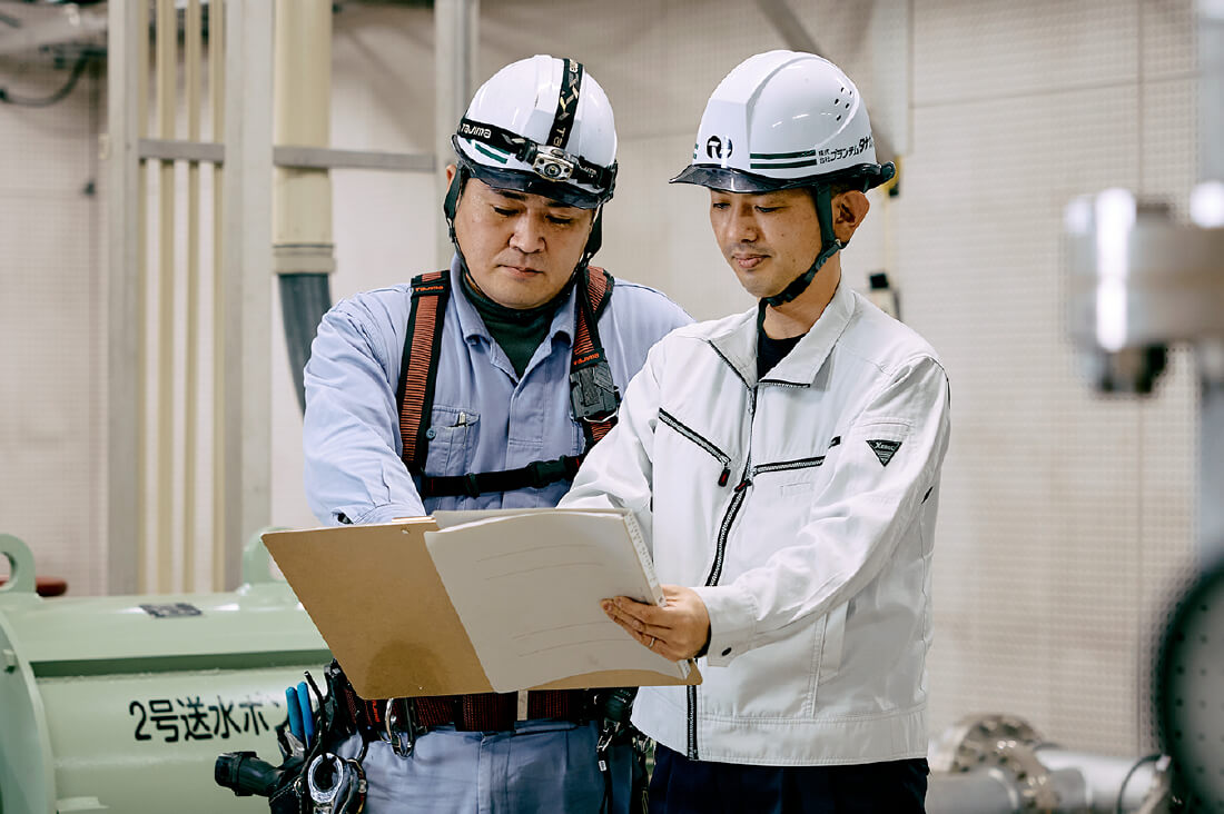 上水・下水設備、農事用設備をはじめ、日々のくらしに欠かせない大事な公共インフラを支えているのが、プランテムタナカの豊富な経験と確かな技能・技術力です。さらにプラントシステム会社として、設計から機器・部品などの製作、現場での据付作業、さらには納品後の点検・整備といったメンテナンスまで、全ての工程を一貫して請け負うことができる総合力もプランテムタナカならではの大きな強みです。