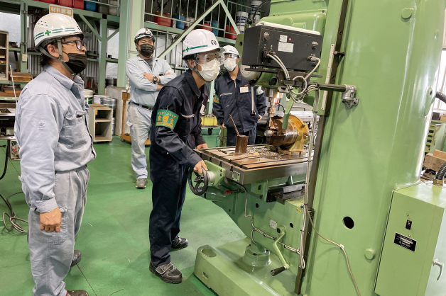さまざまな工作機械を使って、設備に必要な部品などの製作を担当。工場で整備した機器を現場に運んでの据付作業や、納品後の点検・メンテナンス作業も行っています。