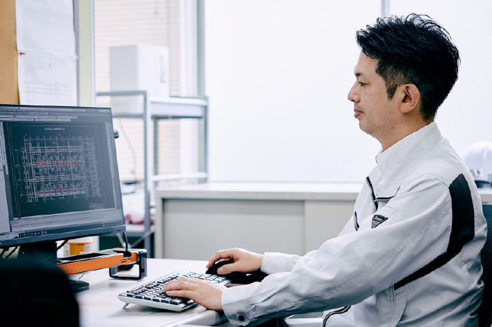 機械設備に関する図面作成(CAD)から部材の強度計算、打ち合わせ資料・提案資料・取扱説明書等の書類作成を行います。また現場での施工管理業務も担います。