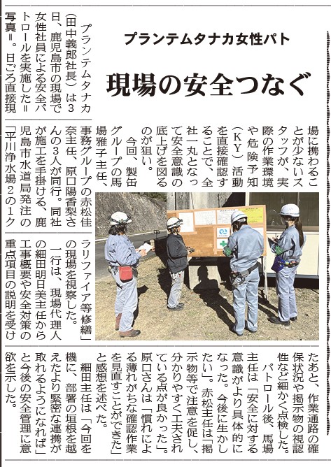 2月3日に女性社員による安全パトロールを実施し、鹿児島建設新聞に掲載していただきました。